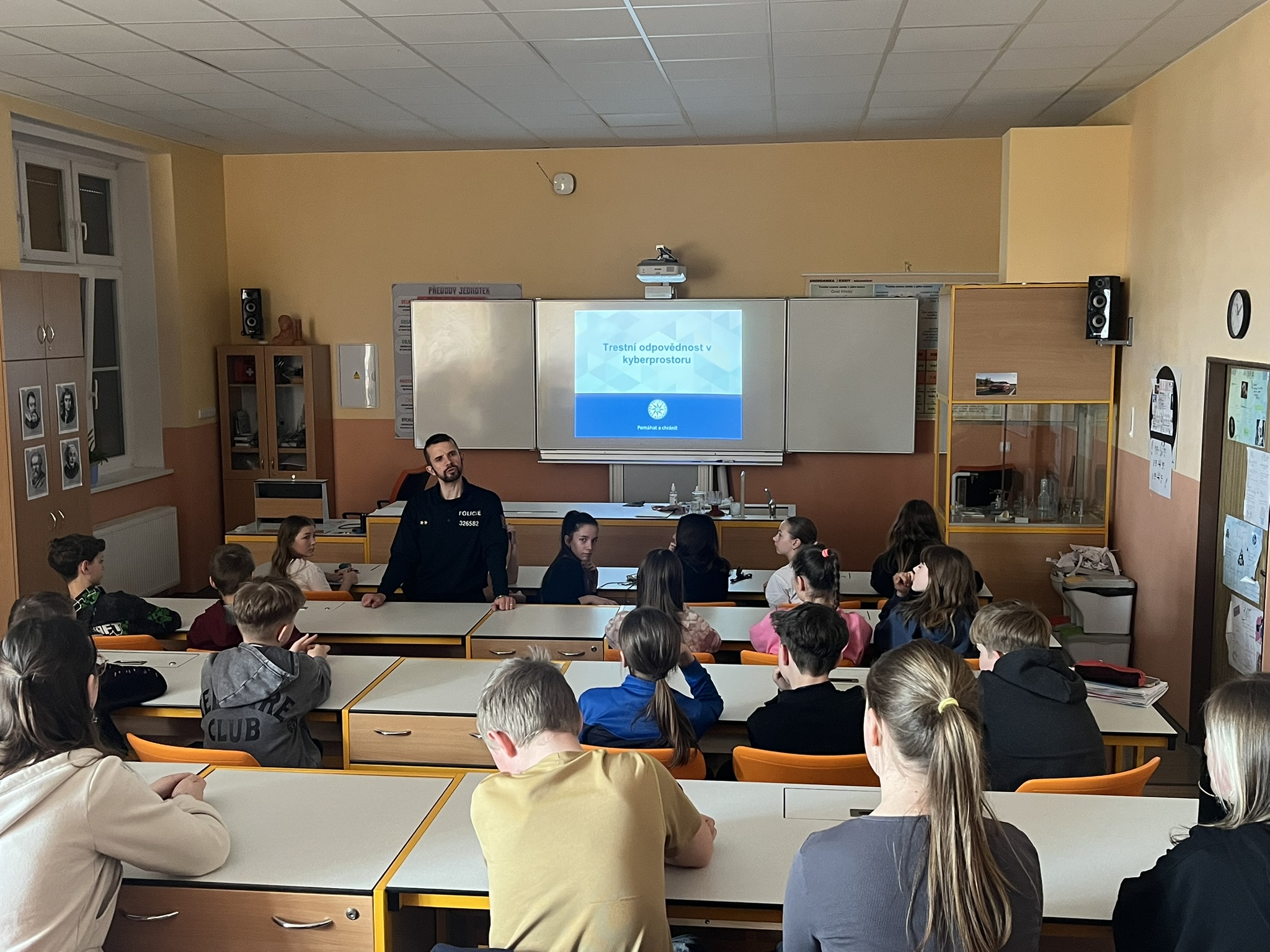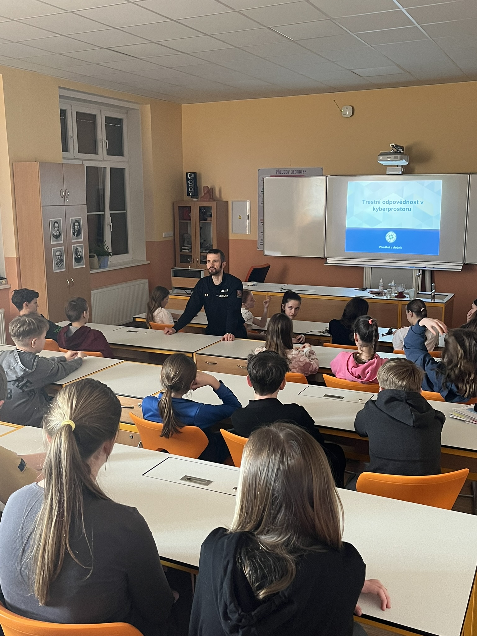 Beseda s policejním preventistou por. Mgr. Miroslavem Mervartem na téma Kyberšikana Zveřejněno: 20. 4. 2026 Upraveno: 20. 4. 2026 Soubory jpg IMG_7607 jpg IMG_7609 jpg IMG_7611 jpg IMG_7612